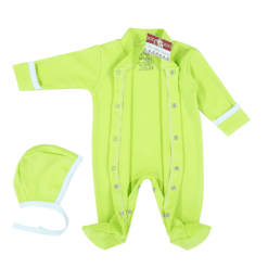 Salopeta cu mănușă, botosel, capse in fata si intre picioare + caciulita (Bumbac 100%, superior, semigros)verde