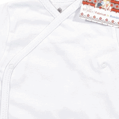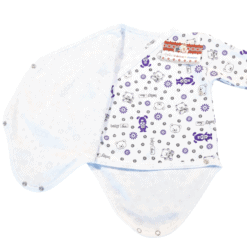 - Partea interioara a bodyului, care vine în contact cu pielea copilului este alba și plăcută la atingere. Exteriorul bodyului, datorita tehnicii de imprimare a materialului, este putin mai ferm.