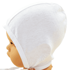 Caciulita nedublata, alba, cu urechiuse aplicate, pentru 6-9 luni (95% Bumbac, semisubtire +5% Lycra)