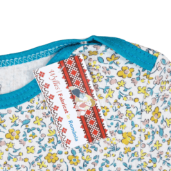 - Materialul din care este confecționat bodyul este rib imprimat cu flori și bentita turcuaz.