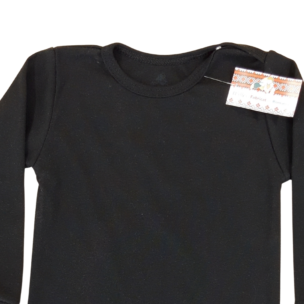 Body RIB cu mâneca si capse pe umar, pt copii mari(Bumbac 100%, superior, pieptanat)Negru