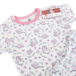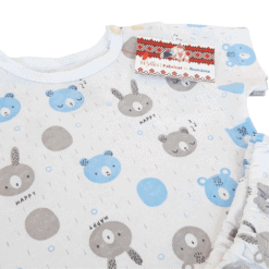 Materie prima: Bumbac 100%, subtire (Glat). Acest tip de bumbac este folosit pentru hainutele specifice sezonului cald, pielea bebelusului respirand mai usor, pastrand o temperatura si umiditate optima, pentru un confort sporit.