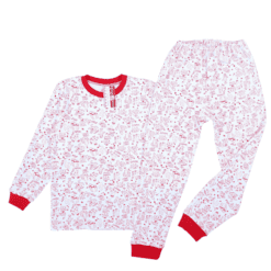 - Pijama este confecționată din bumbac semigros, interlok imprimat.