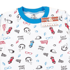 - Pijamaua este confecționată din bumbac semigros, interlok imprimat.