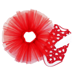Compleu, fustita tip balerina + body cu maneca lunga si capse pe umar