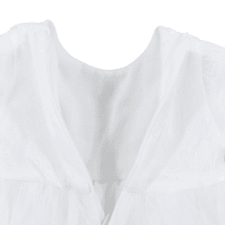- Sistemul de inchidere este efectuat cu ajutorul unu fermoar ascuns, care se deschide pana sub talie, facand imbracarea copilului foarte usor de realizat.Lungimea rochiei este medie, sub genunchi, putant fi purtata pana copilul mai crestesi ea devine mini.