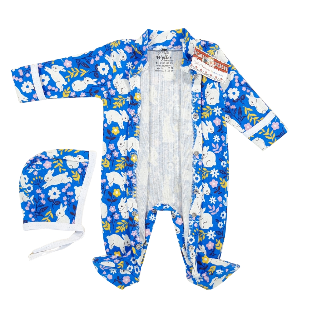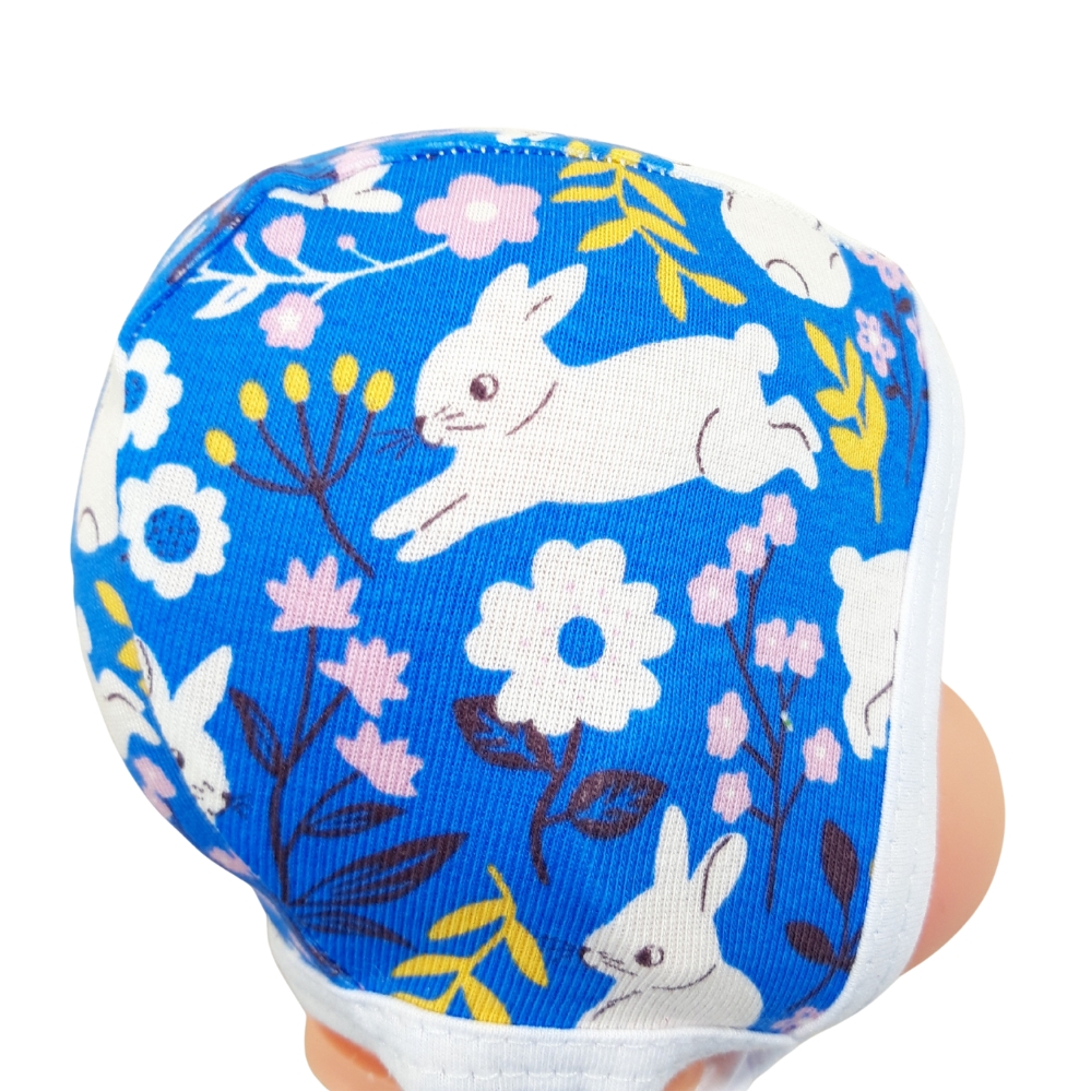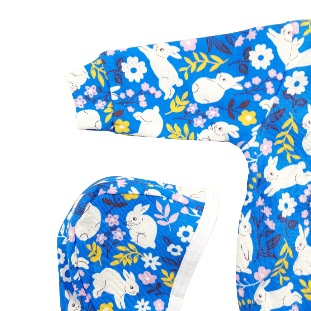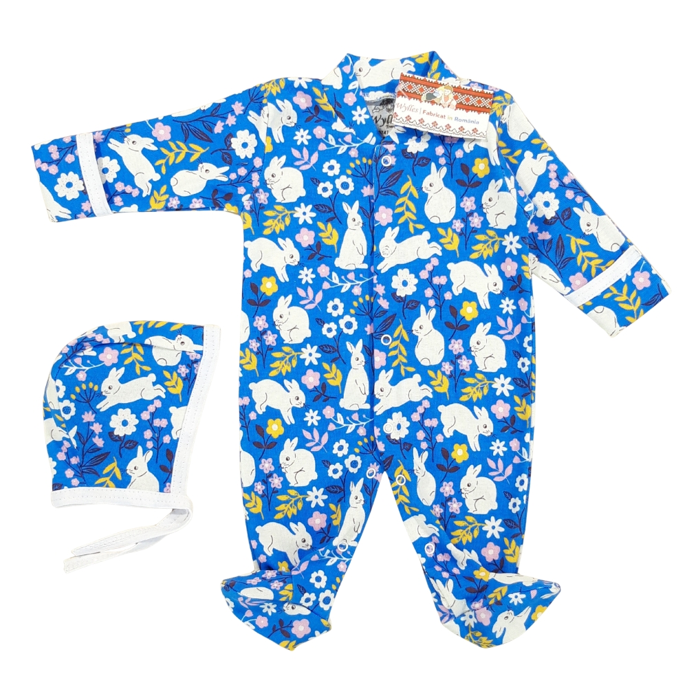 Salopeta imprimată, cu butoni in fata si pe picioare + caciulita cu urechiușe (Bumbac 100%,semigros)