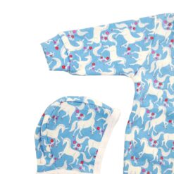 Salopeta 0-6 luni(SEMISUBTIRE)cu manusa si botosei, cu capse in fata si pe ambele picioare + Caciulita (Bumbac 100%,rib )