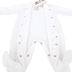 - Sistemul de deschidere este cu butoni /capse atat in fata cat si intre picioare, facilitand astfel atat imbracarea cat si dezbracarea bebelusului.