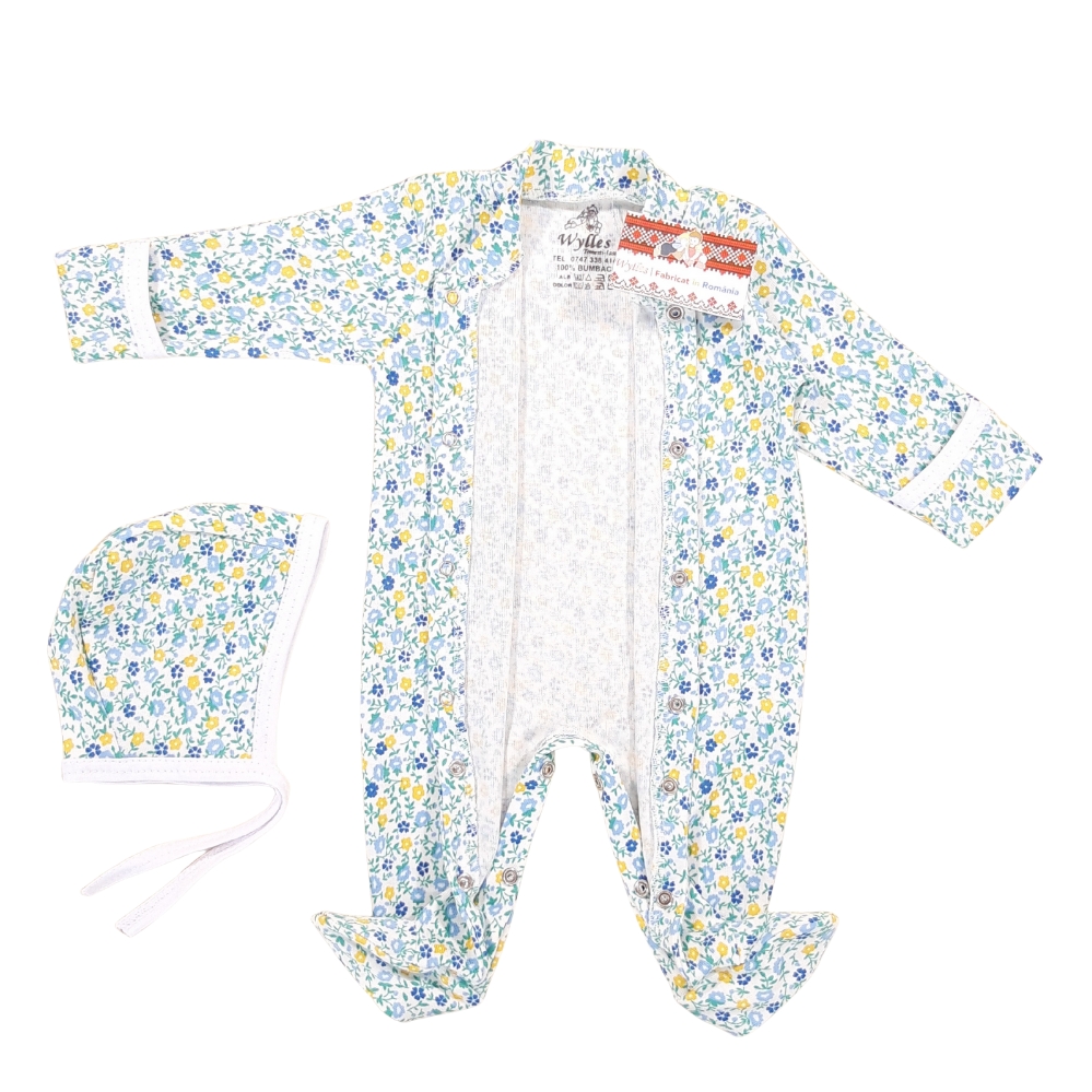 Salopeta 0-2 luni(SEMISUBTIRE)cu manusi si botosei, cu capse in fata si pe ambele picioare + Caciulita (Bumbac 100%,rib pieptanat)