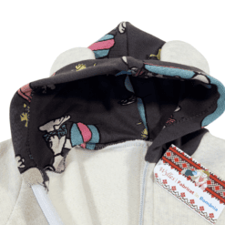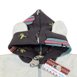 - Salopeta are botosei, gluga imprimata dublată, cu urechiuse.
