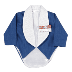 Costum de ocazie cu frac, botez, 100% Bumbac, 4 piese, albastru