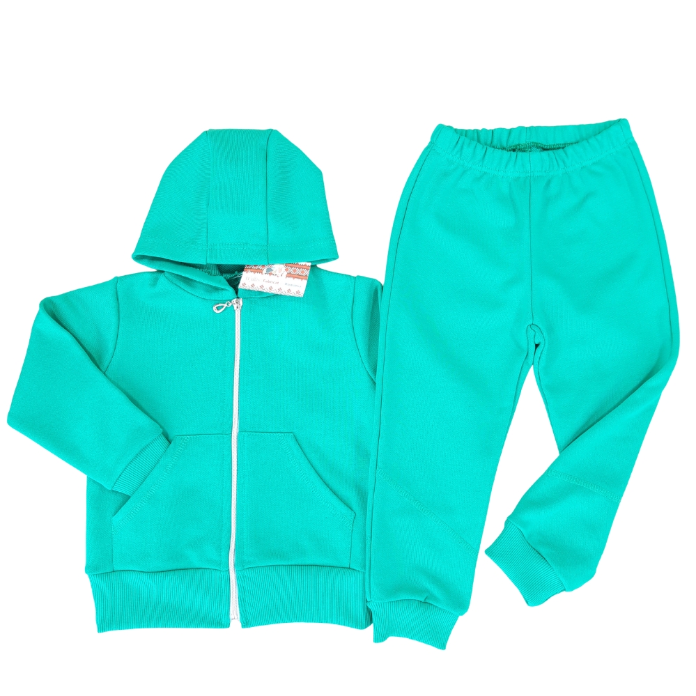Trening 2 luni-6 ani, hanorac cu gluga + pantalon (Bumbac 100%, semigros, ferm)verde
