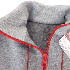 - Culoarea treningului este gri inchis cu dungi rosii, potrivit pentru baietei cat si pentru fetite.