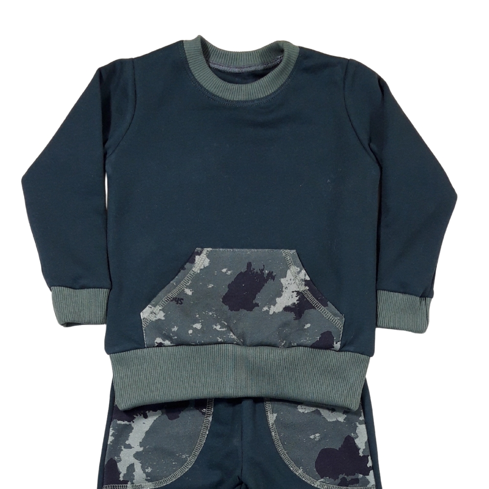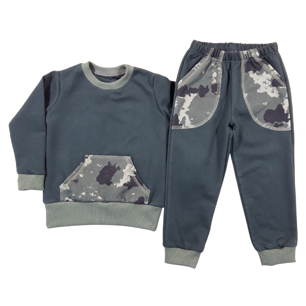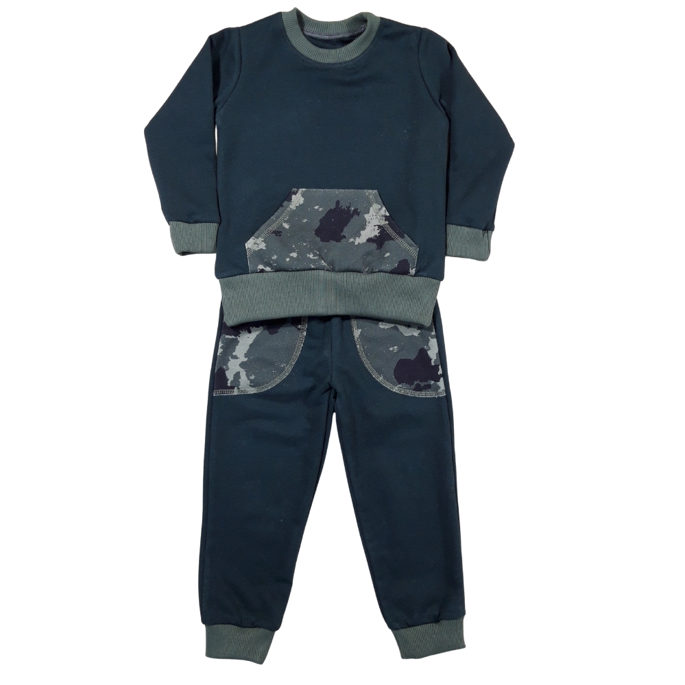 • Treningul este moale si usor flanelat la interior. Este compus din hanorac tip marsupiu și pantalon cu buzunar aplicat.
