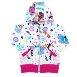 Hanoracul are în talie și la maneci bandă elastică din bumbac cu lycra.