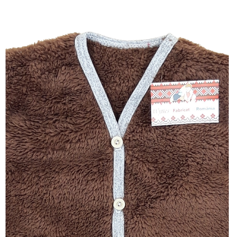 - Vesta este confecționată din cocolino, este plăcută la atingere și este călduroasă.( grena)